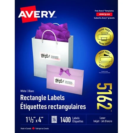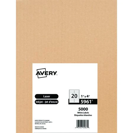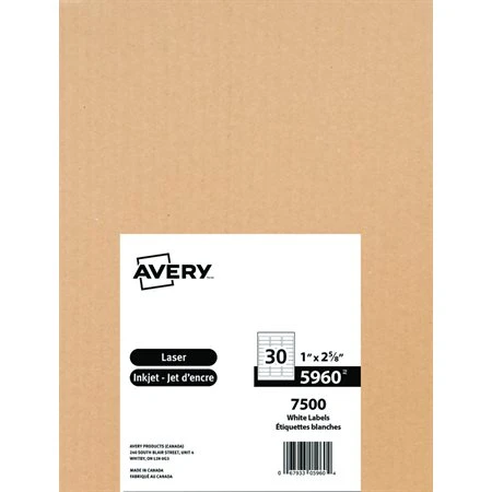 Avery Étiquettes Rectangulaires Blanches Easy Peel® Paquet De 25 Feuilles 2-5 / 8 X 1” (750)