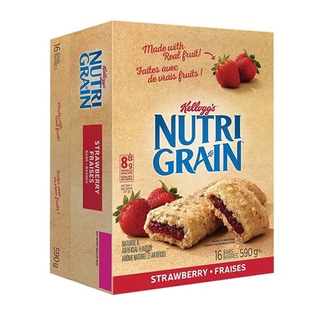 Pâte cuite douce et dorée faite de blé et d’avoine à grains entiers, avec de vrais fruits. Barre de 37 g. Boîte de 16 barres.