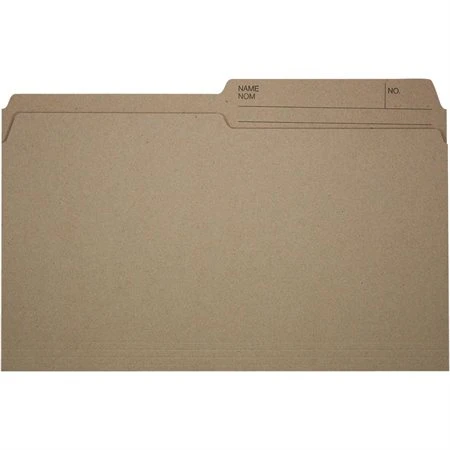 Onglet imprimé, coupé 1/2. 10-1/2 pts. 100% recyclé. Kraft naturel.