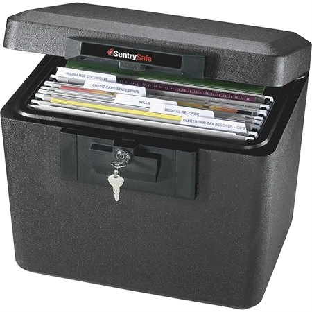 Pour fichiers suspendus de format lettre. Serrure à clé privée avec deux clés. Protection incendie classée UL 30 minutes à 1500 degrés fahrenheit. ETL vérifié pour la protection contre l’incendie des médias numériques 30 minutes. Noir. 0,61 pied cube. Int: 12 x 8,5 x 10,4 po. H. Ext: 15,3 x 12,1 x 13,6 po. H.