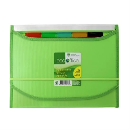 Fenêtre transparente sur le rabat. Polypropylène recyclé. 100 % oxo-biodégradable. Séparateurs de couleur pour classement facile. Rebords cousus. Couleurs variées. Format Lettre.