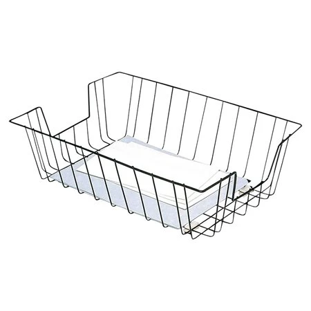 Corbeille avec chargement frontal avec une indentation dans le centre des deux extrémités pour faciliter l’accès. Accès visuel facile aux documents et fichiers. La profondeur de la corbeille permet de ranger beaucoup de documents. Noir.