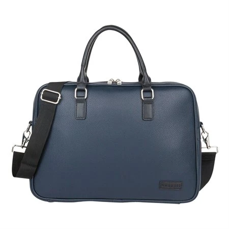 Cuir vegan. Compartiment rembourré pour ordinateur portable jusqu’à 14 po. Pochettes intérieures multiples avec panneau organisateur intégré. Pochette arrière avec fermeture à glissière pour accès facile. Poignées renforcées. Bandoulière ajustable et détachable. Courroie arrière pour poignée télescopique. 15,5 x 3 x 11 po.