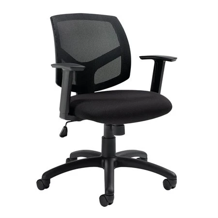 Dossier en tissu maillé avec assise rembourrée en tissu. Commande de réglage de l’inclinaison de l’assise. Les caractéristiques comprennent le réglage de la tension, le blocage du basculement, l’assise à rebord semi-arrondi, les coussins profilés. Hauteur de l’assise réglable. Garantie à vie limitée. Dimensions : 25 x 21-1/2 x 35-1/2 po H. Noir. Certifié par Greenguard.