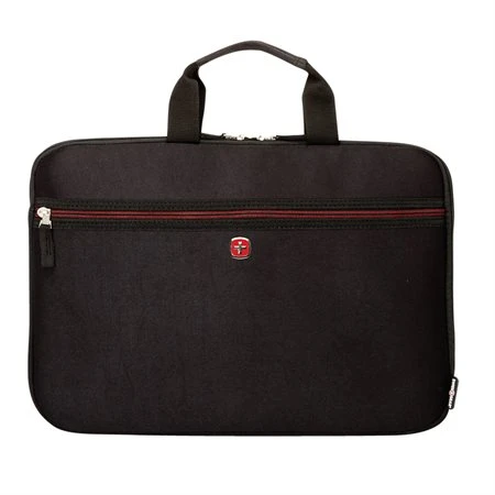 Néoprène. Section matelassée pouvant contenir un ordinateur portable jusqu’à 15,6 ». Pochette organisatrice sur le dessus. Noir.
