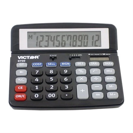 Affichage 12 chiffres. SĂ©lecteurs de dĂ©cimales et d’arrondissements. Touches de taxes. Touches coĂ»tant, vente, marge. Grand total. Alimentation solaire et Ă piles. Utilise 1 pile x 389 (inclus). Garantie de 2 ans. Noir. 7-3/4 x 5-11/16 x 1-3/4 »